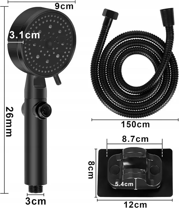 Dušas komplekts 3 vienā ar uzgali, šļūteni un stiprinājumu melnā krāsā ir svarīgs elements, kas pārvērtīs jūsu ikdienas ūdens procedūras par īstu baudu. Aprīkots ar pieciem dažādiem ūdens padeves režīmiem, šis uzgalis ne tikai sniegs jums relaksējošu dušu, bet arī nodrošinās maksimālu komfortu un funkcionalitāti.