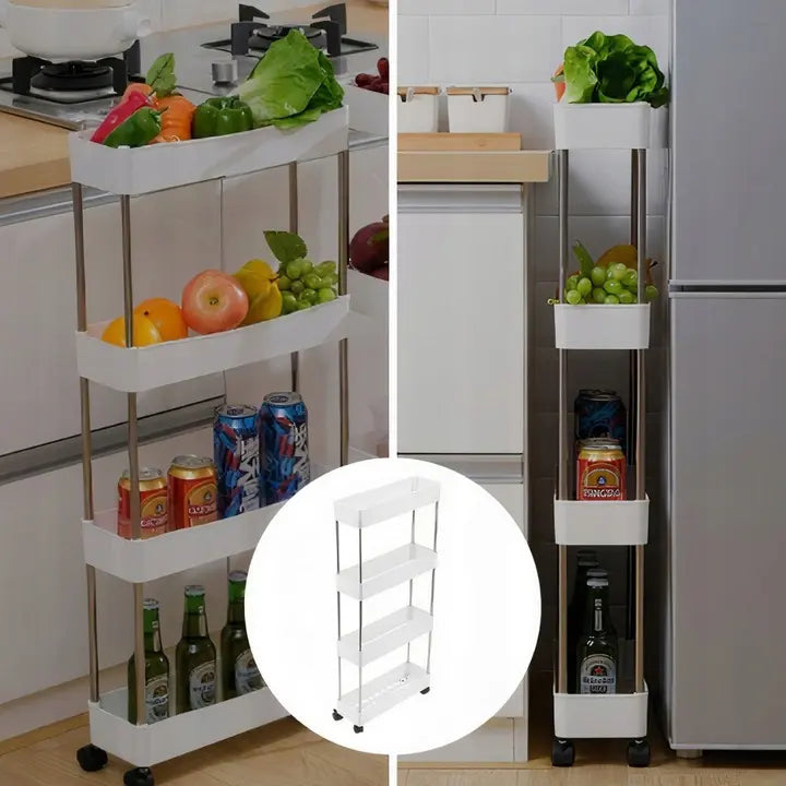 Universālā šaura plauktu sistēma uz riteņiem ar palielinātu attālumu starp plauktiem ir ideāls palīgs kārtības uzturēšanai virtuvē, vannas istabā, bērnu istabā, viesistabā, pieliekamajā, darbnīcā vai vasarnīcā. Pateicoties tās kompaktumam un mobilitātei, visas nepieciešamās lietas vienmēr būs pa rokai.