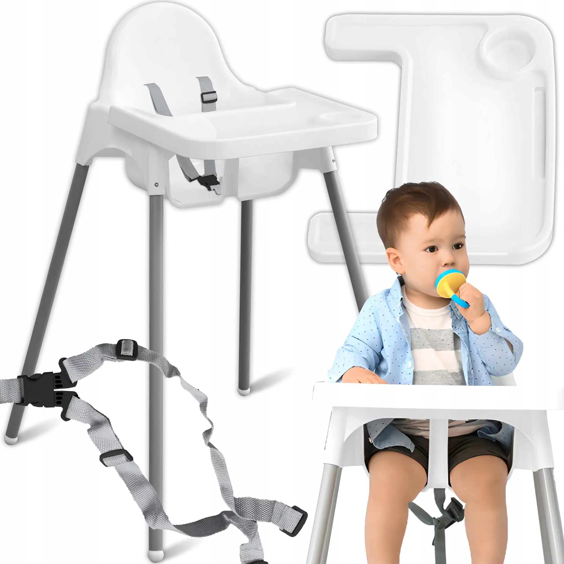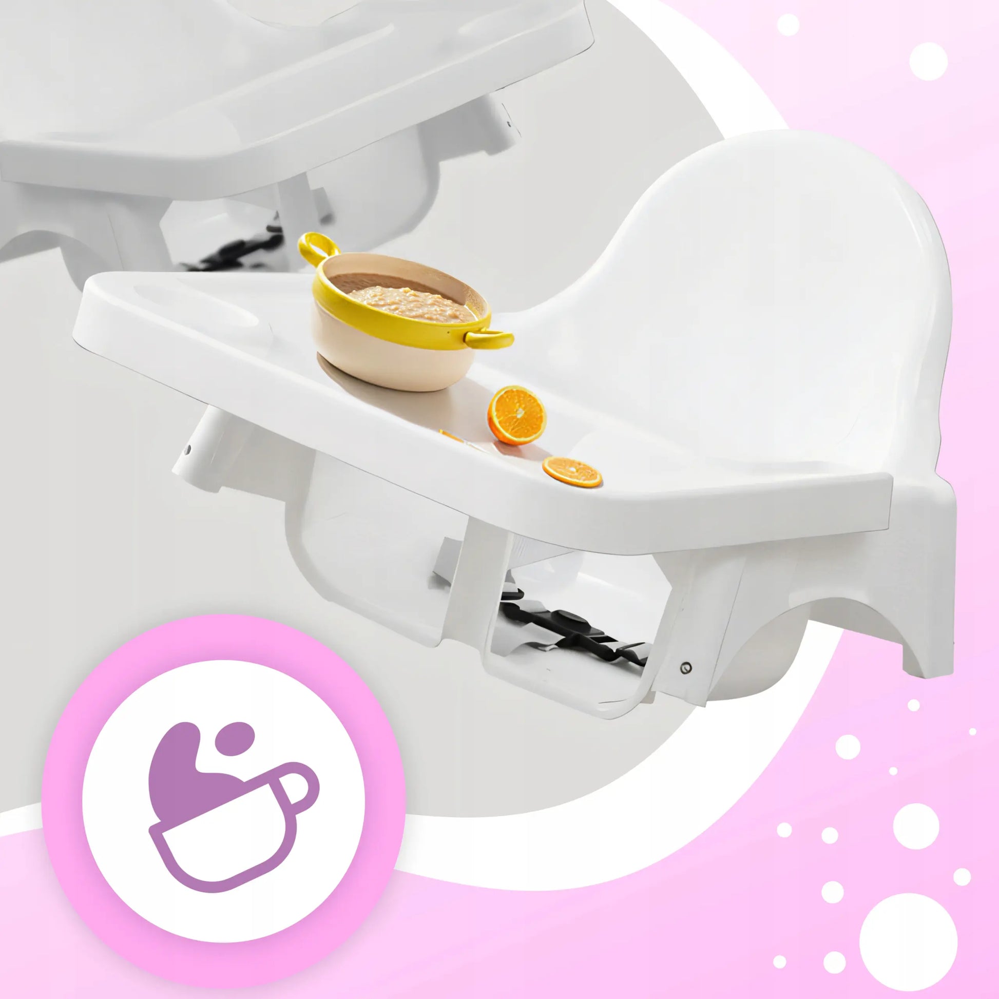 Благодаря белому цвету стульчик легко чистить: достаточно протереть его влажной тканью после использования. Сиденье можно использовать как с подносом, так и без него. Высота 94 см позволяет дотянуться до большинства столов в доме. Главные преимущества: устойчивость, широкий поднос, простота ухода и быстрая разборка, а также современный минималистичный дизайн. В комплект входят белый стульчик для кормления, инструкция на русском языке и оригинальная упаковка.