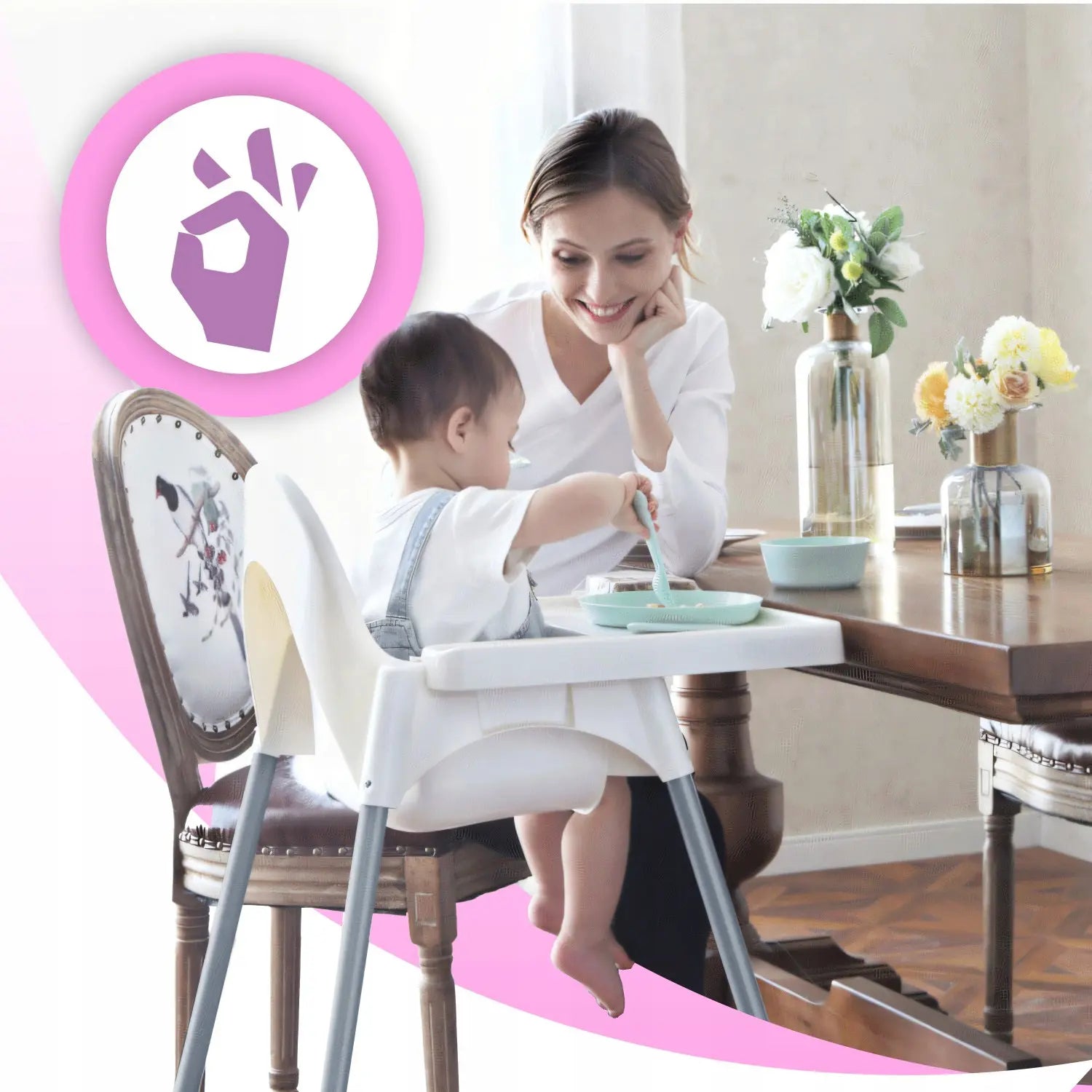 Этот стульчик не только служит сиденьем, но и станет идеальным уголком отдыха для вашего ребёнка. Если вам нужно что-то сделать, просто посадите ребёнка в него. Он будет сидеть в безопасности, а вы сможете за ним присматривать. Этот стульчик подойдёт для любого ребёнка до трёх лет.