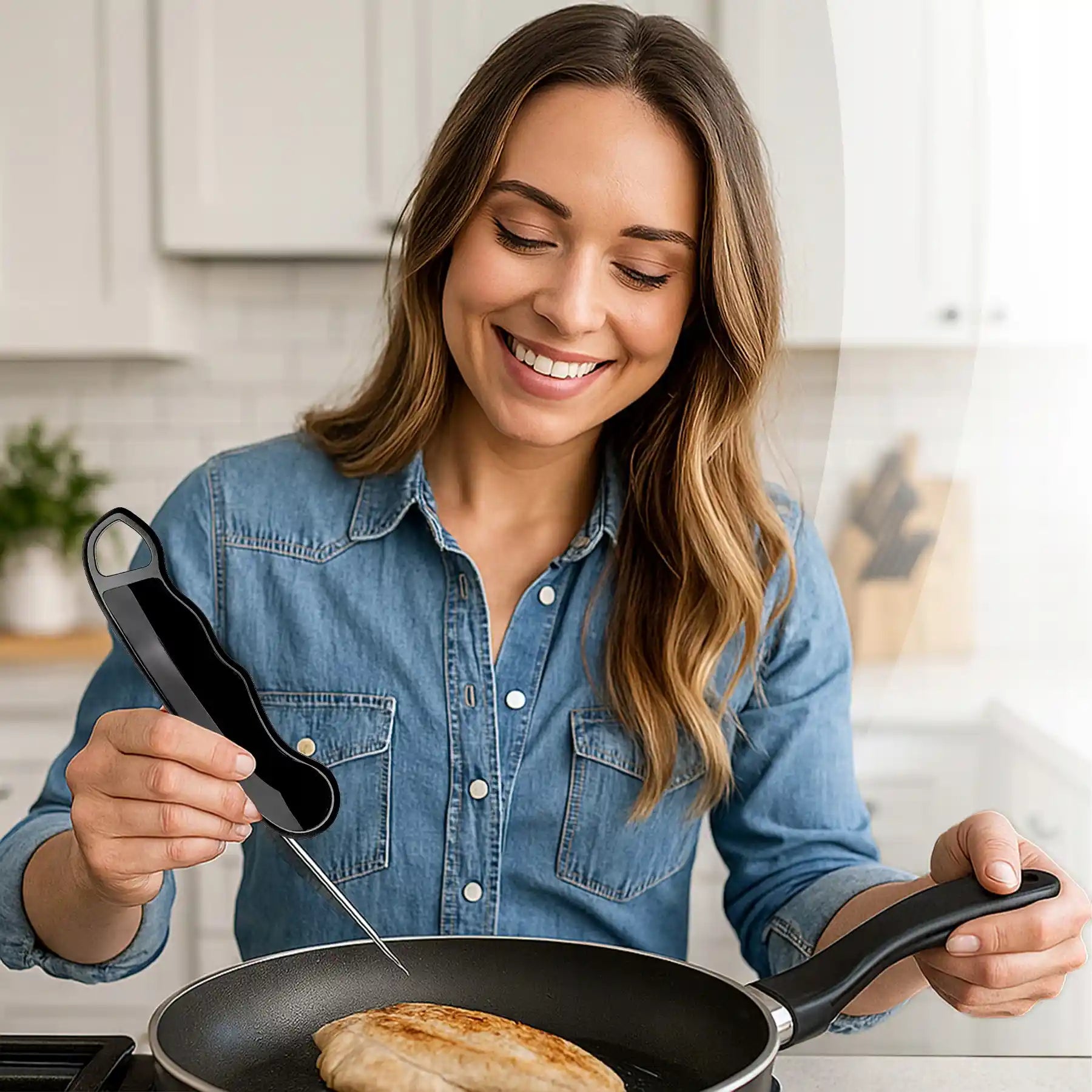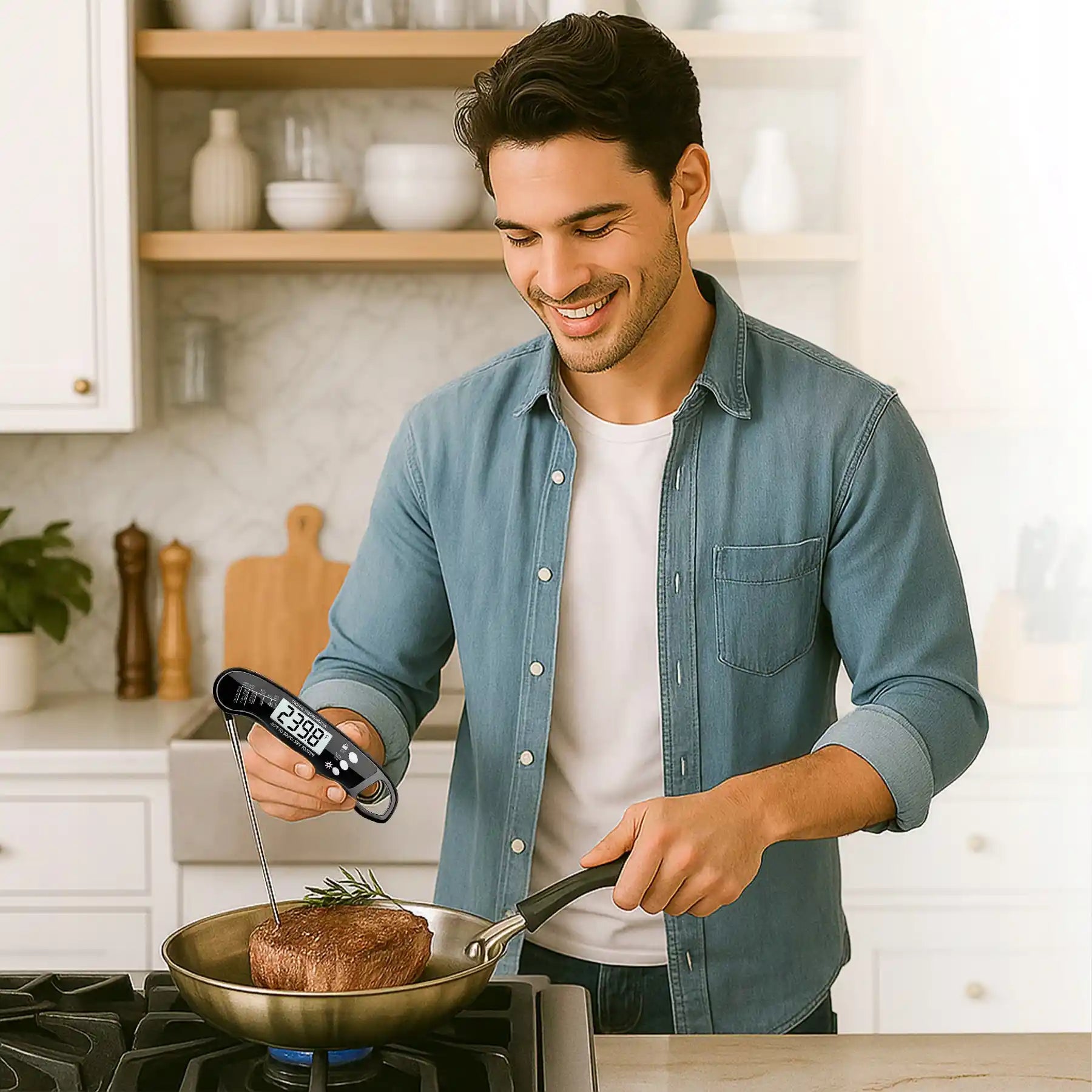Цифровой термометр позволяет измерять температуру в диапазоне от -50°C до +300°C, что делает его идеальным инструментом для любых кулинарных задач. Его можно использовать для гриля, выпечки, приготовления на пару и даже приготовления мороженого. Благодаря широкому спектру применения вам не придётся тратиться на несколько разных термометров — один прибор удовлетворит все ваши потребности на кухне.