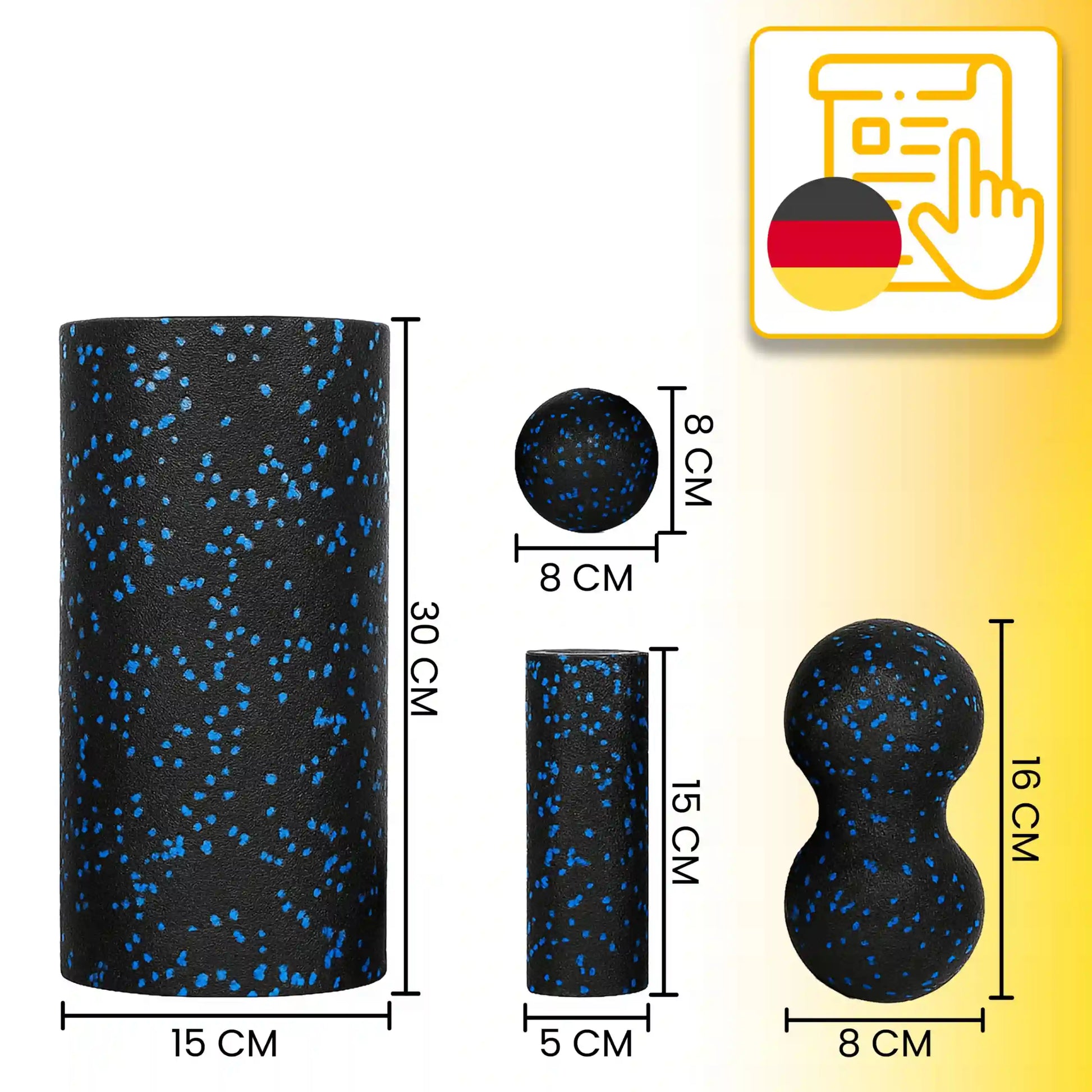 Массажный набор из EPP: ролик, шарик и мини-ролик – идеальное решение для реабилитации и восстановления. Цвет: чёрный с синим. Изготовлен из прочной EPP-пены, материал обладает высокой жёсткостью, что делает его идеальным для миофасциального массажа. В набор входят четыре элемента, которые позволяют эффективно прорабатывать различные группы мышц. Лёгкий и компактный, этот набор подойдёт как спортсменам, так и людям, ведущим активный образ жизни.