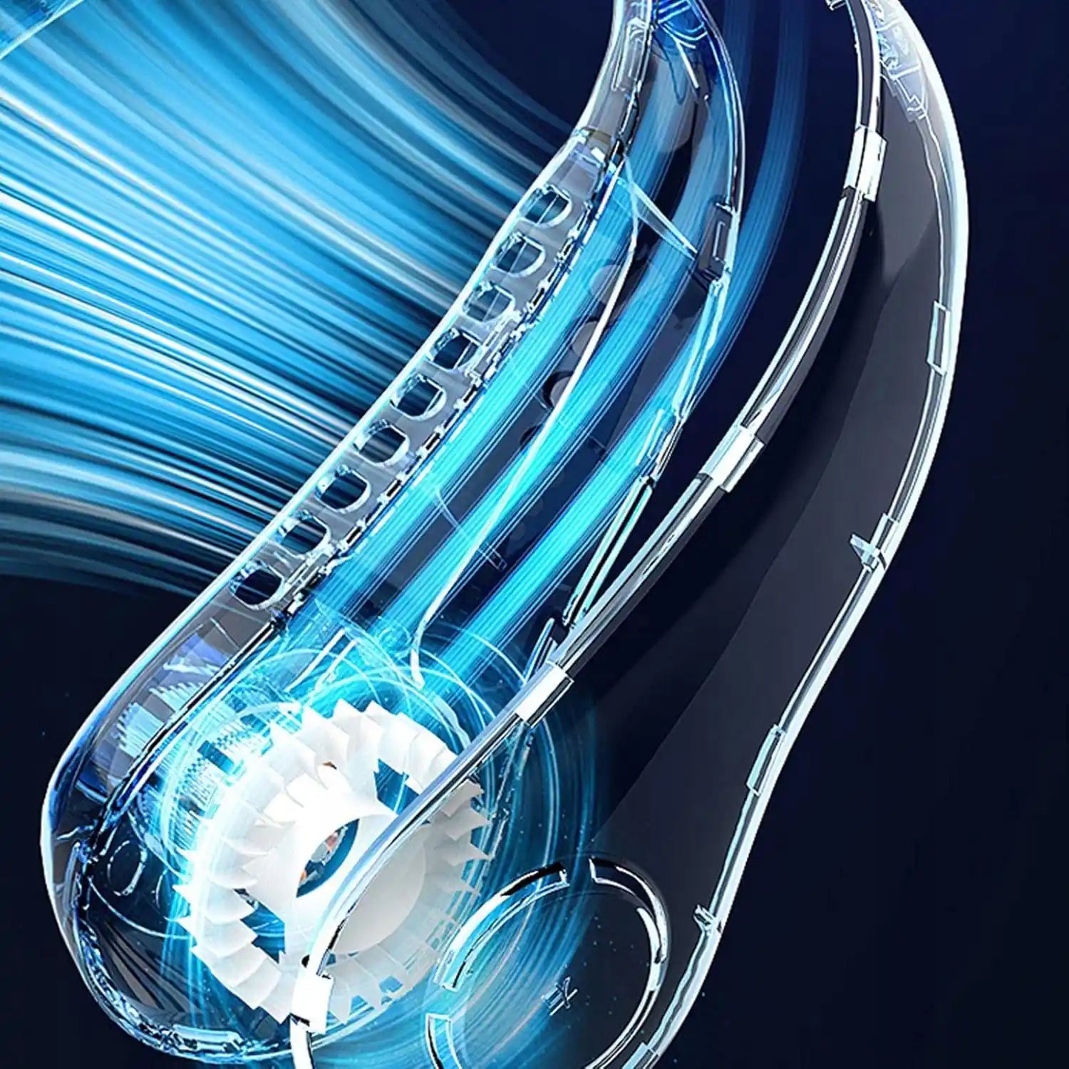 Шейный вентилятор — ваш идеальный спутник в жаркие дни! Компактный, безлопастной, этот портативный вентилятор имеет продуманную конструкцию и наушники, которые позволяют удобно носить его на шее. Благодаря встроенной подставке он идеально подходит как для путешествий, так и для домашнего использования.